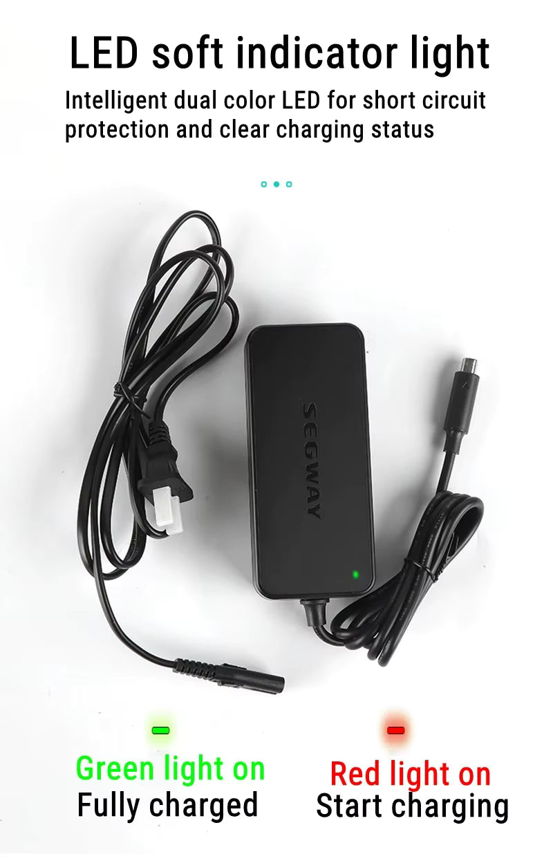 Product Overview: The Official Ninebot Segway Battery Charger is a high-performance, portable charging solution designed to keep your electric scooters powered and ready for any adventure. 🚀 Crafted with precision, this charger is compatible with a wide range of Ninebot Kick Scooter models, including the E3 ,E3 pro ,MAX G30LP, E22, E25 🛴